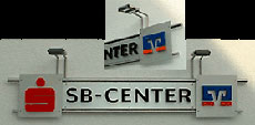 aus Edelstahl, mit aufgesetzten Acrylbuchstaben, beleuchtet